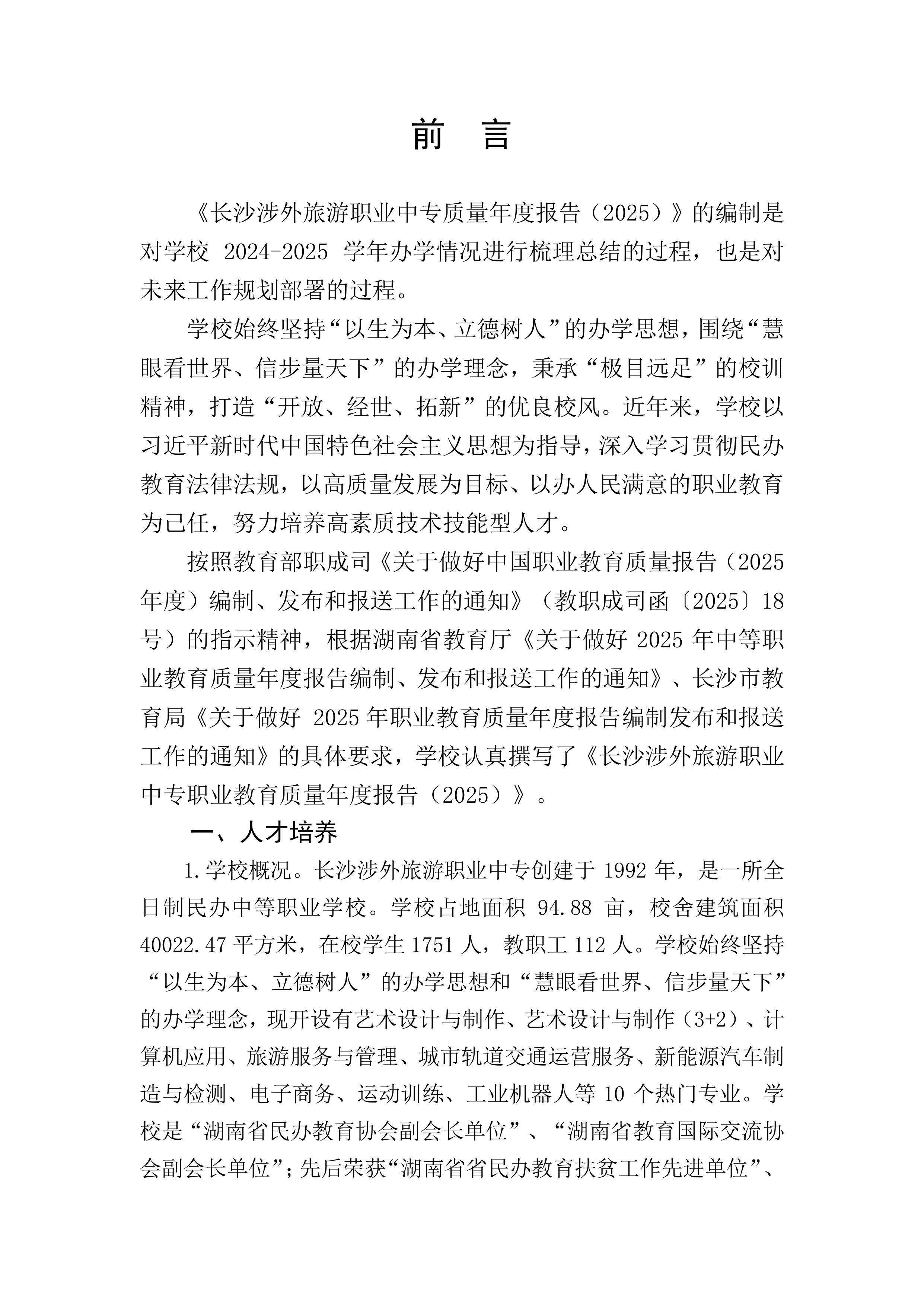 2025年教育质量报告(长沙涉外旅游职业中专)